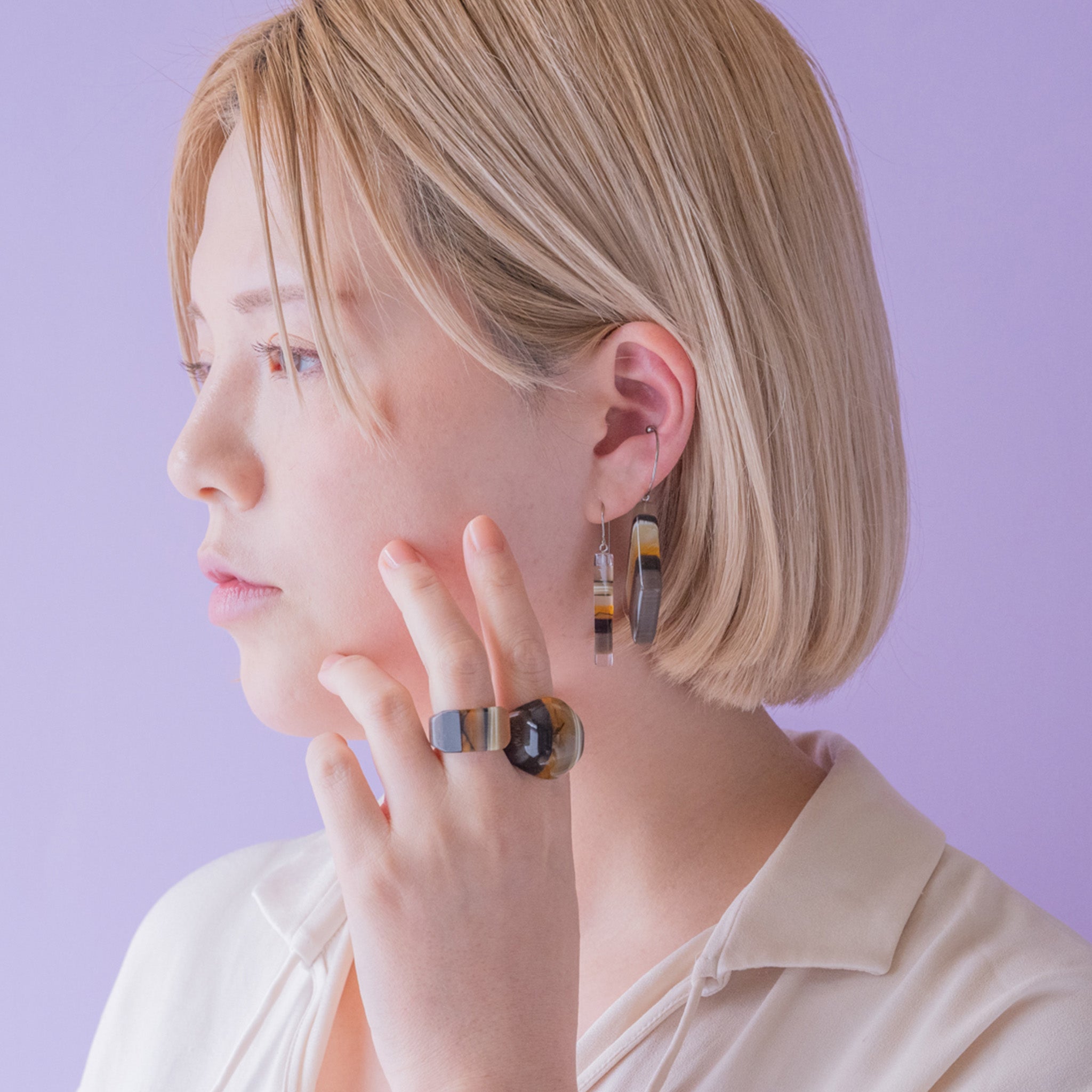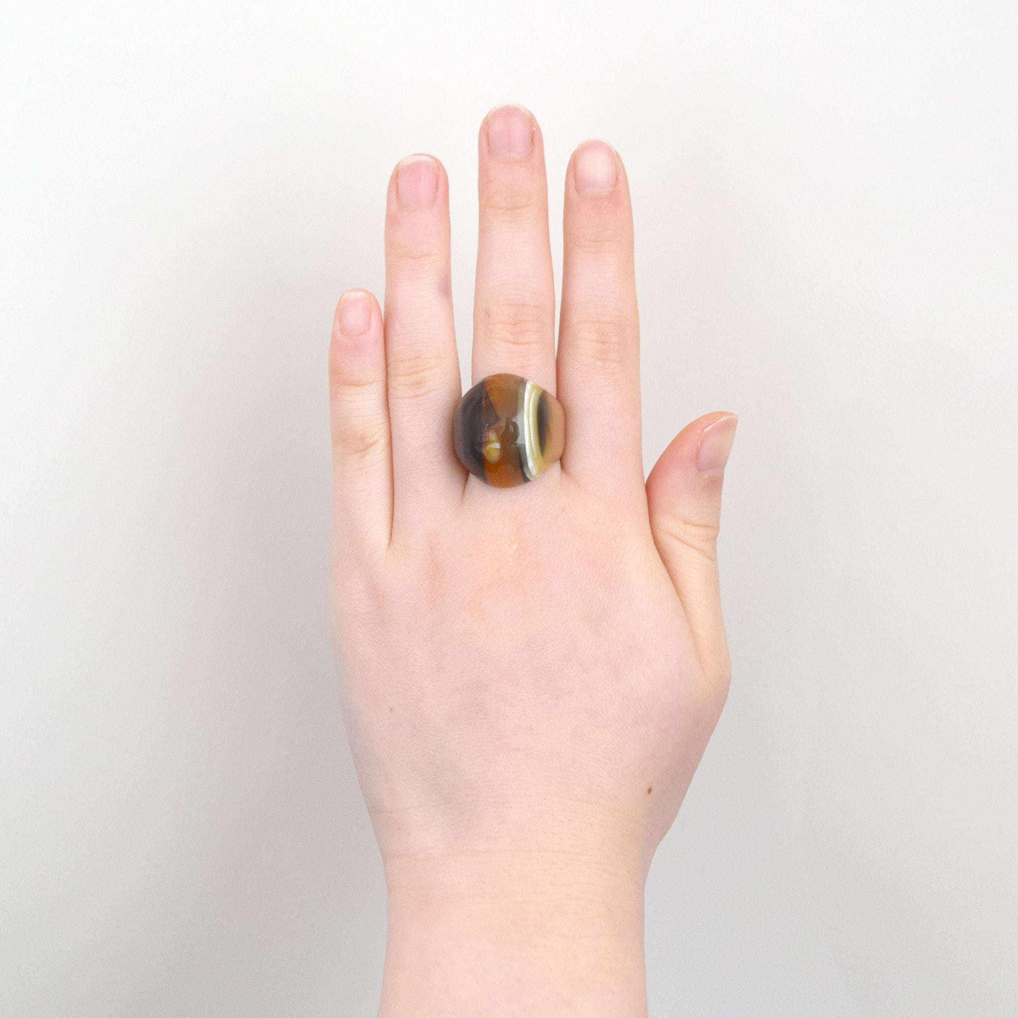 存在感を醸し出すしっかりとボリュームのあるビッグリング。Dirocca Ringより一回り程度大きいサイズ感で、手元が一気に主役級の華やかさになります。