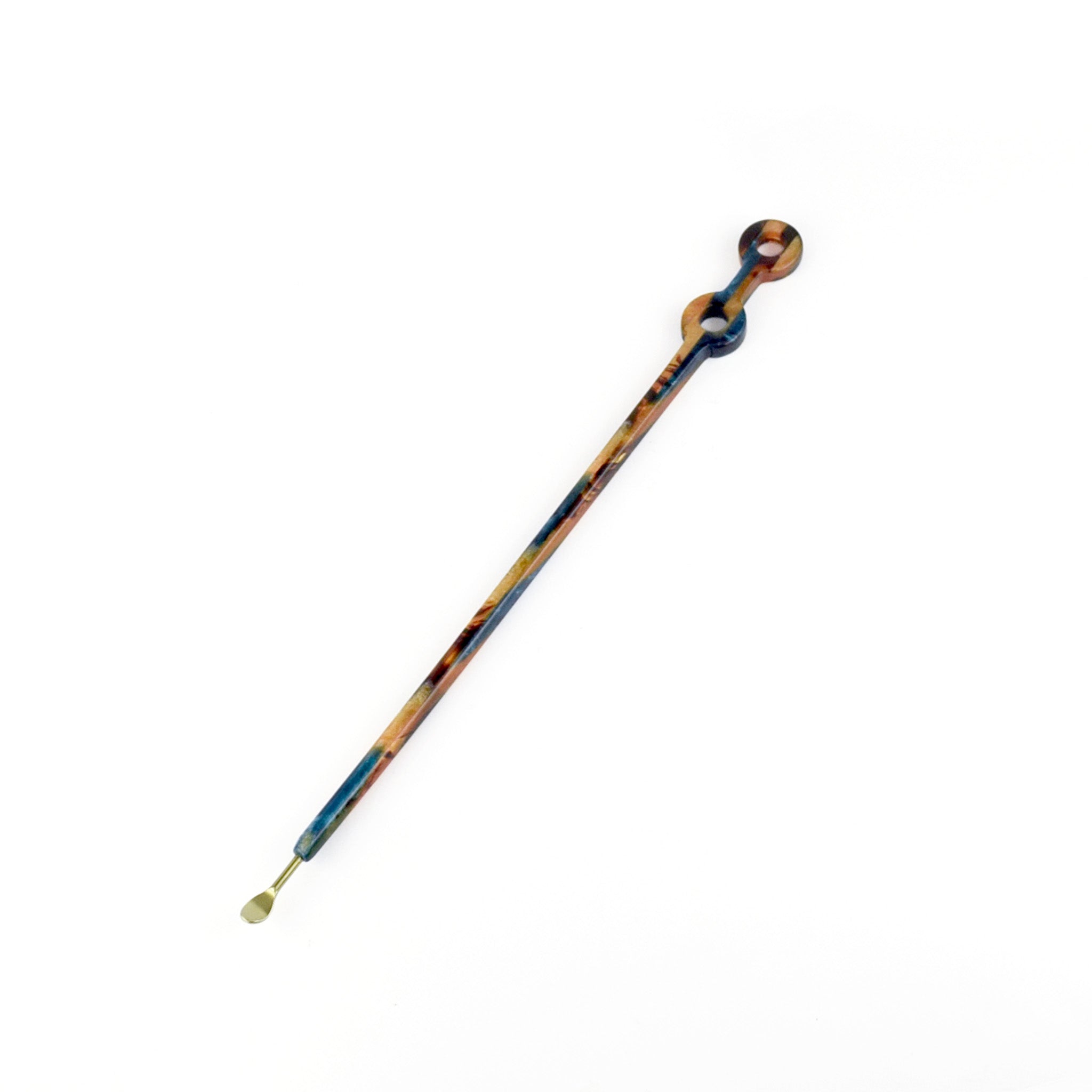 弾力性・吸湿性で人体との親和性も良い素材特性をもつセルロースアセテートを持ち手に、 アレルギーがない、錆びない、軽いという特性がある高級感のあるβチタンを先端部分に組み合わせています。