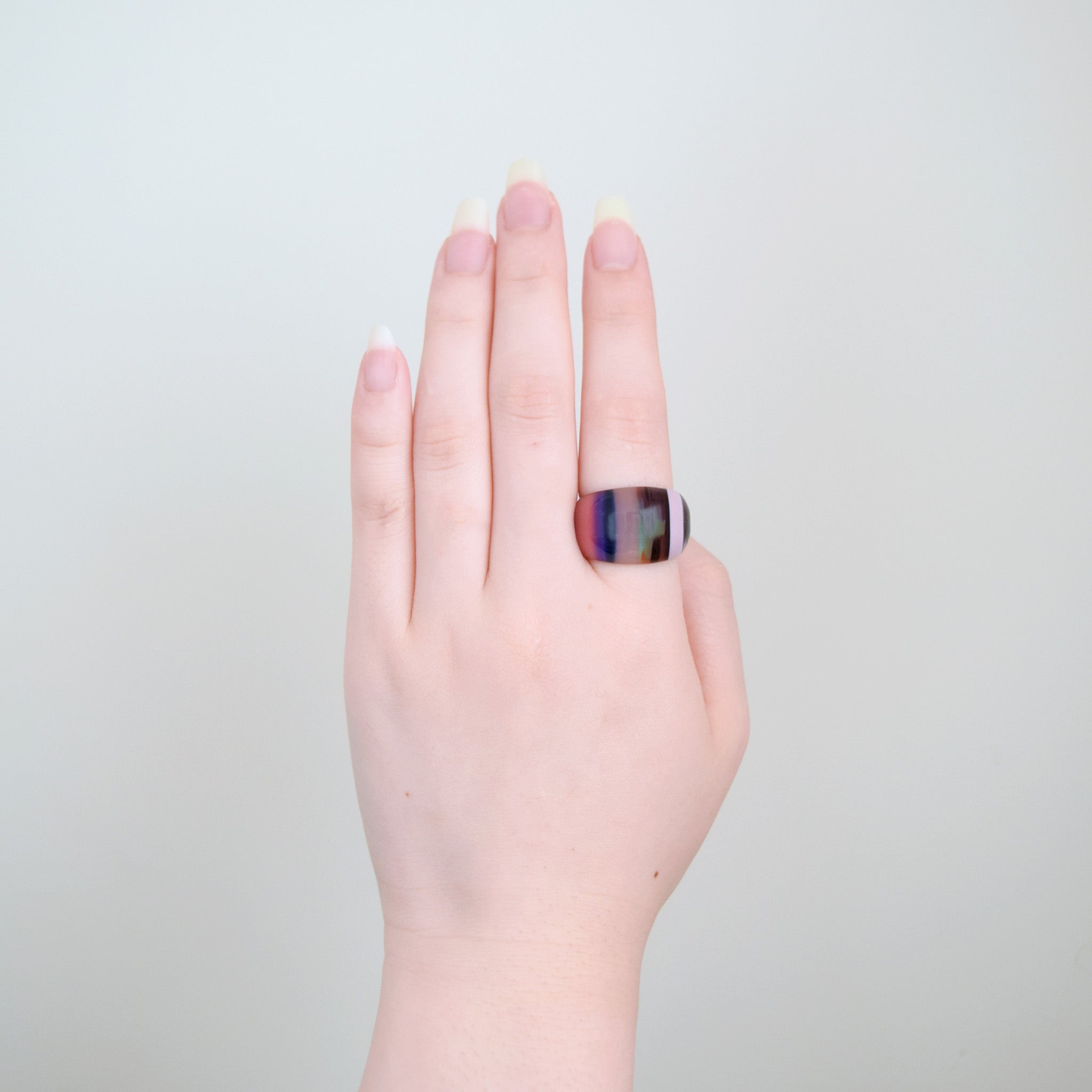 艶やかなカラー、天然鉱石のような透明感、つるんとした光沢、ワクワクするKISSOの定番リングです。