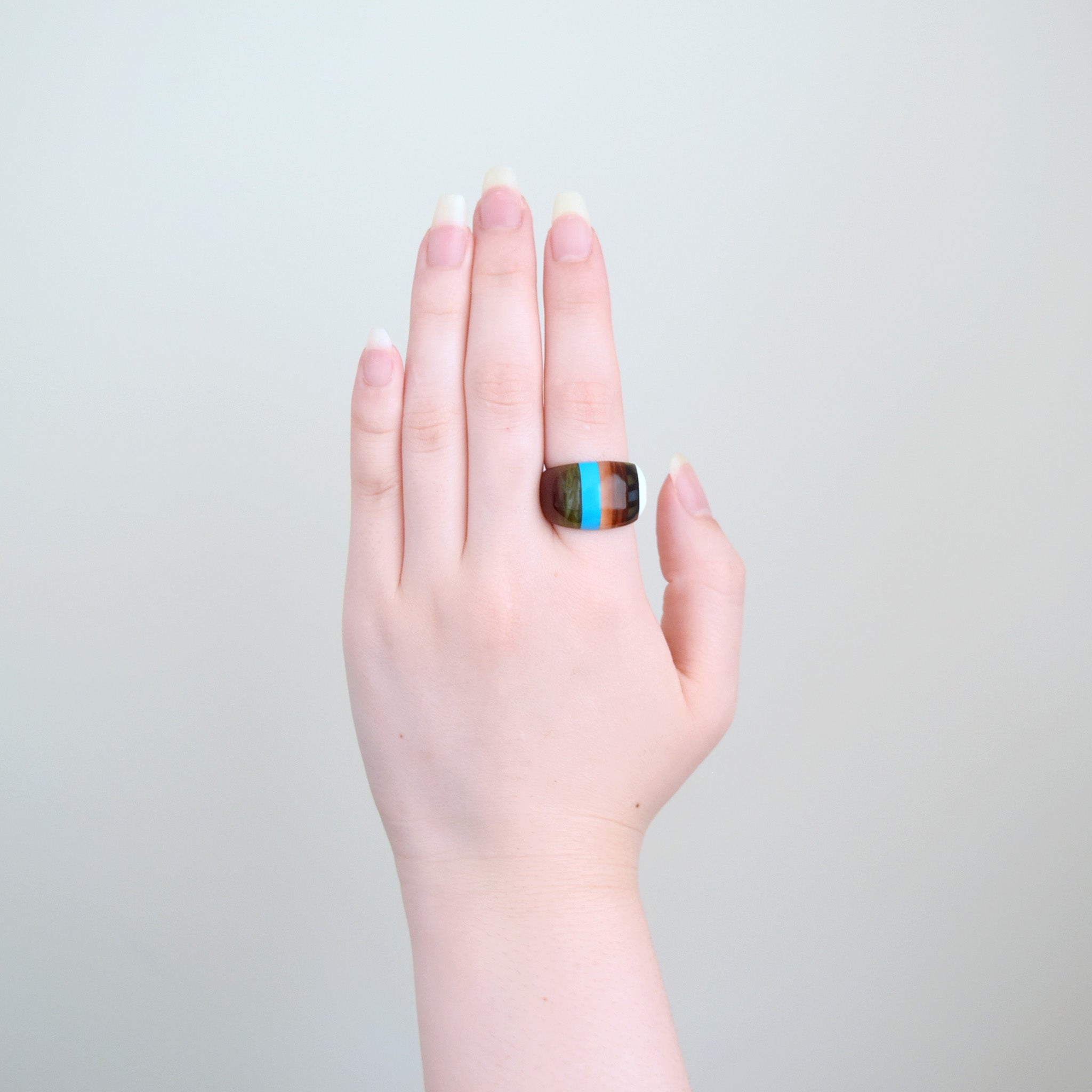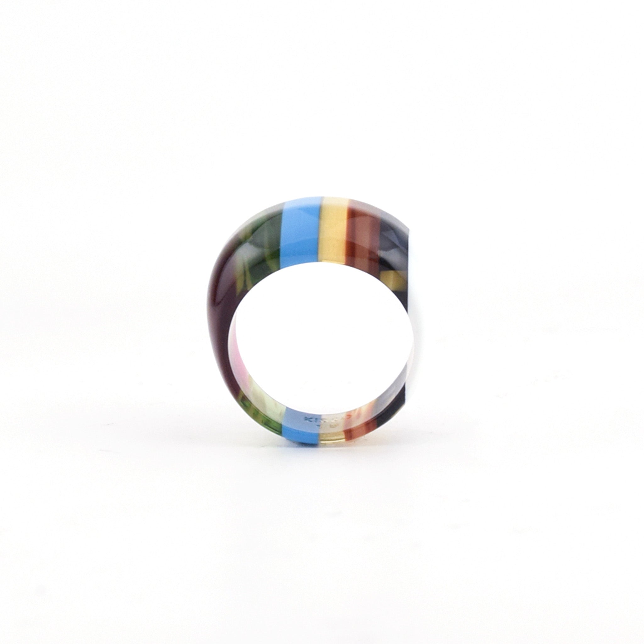 職人が、特殊な技術で何層も重ね貼り合わせ、出来上がった原石を、丁寧に削り出し、何度も磨き上げることでKISSOならではの魅力がたっぷり詰まったリングに仕上がりました。