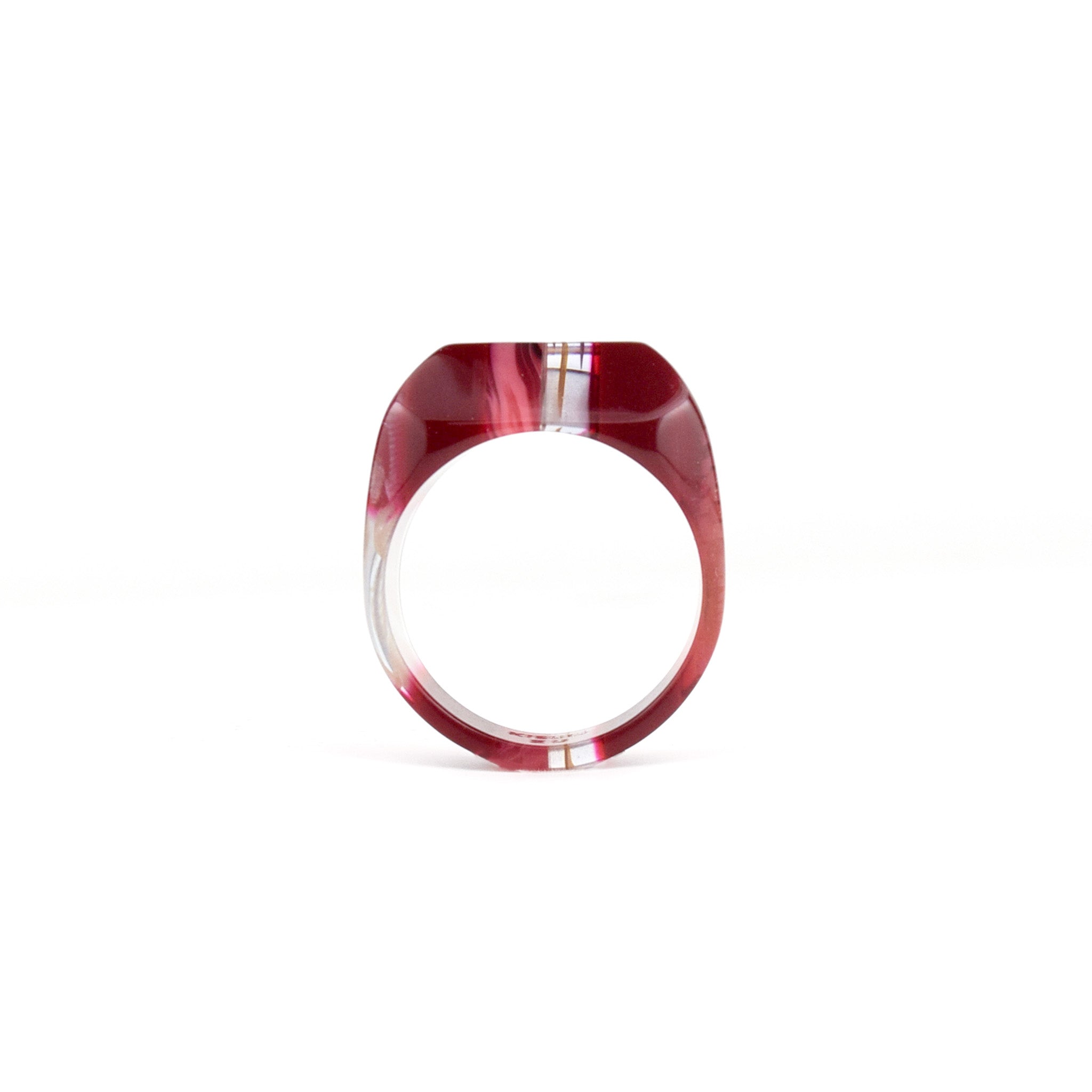 職人が、特殊な技術で何層も重ね貼り合わせ、出来上がった原石を、丁寧に削り出し、何度も磨き上げることで、KISSOならではの魅力がたっぷり詰まったリングに仕上がりました。