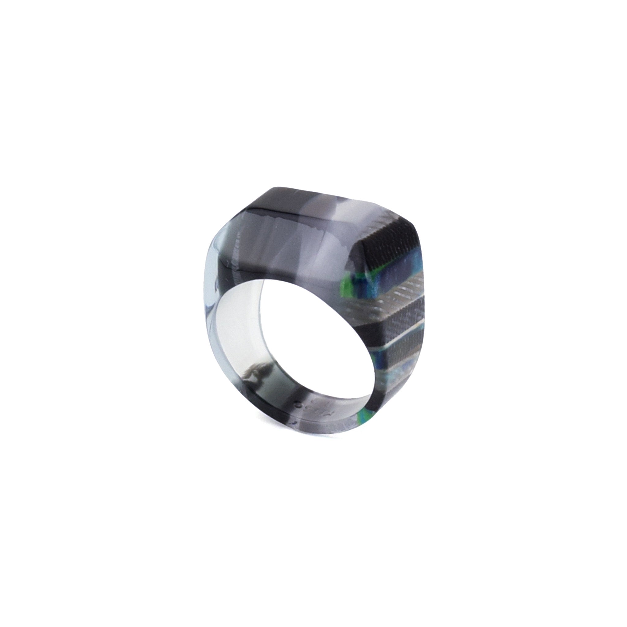 職人が、特殊な技術で何層も重ね貼り合わせ、出来上がった原石を、丁寧に削り出し、何度も磨き上げることで、KISSOならではの魅力がたっぷり詰まったリングに仕上がりました。